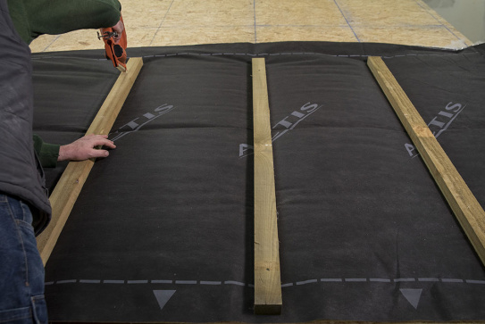 El aislamiento térmico Boost’r Hybrisd’s se fija rápidamente ya sea mediante grapado o clavado, es fácil de cortar y gracias a la flexibilidad de este aislamiento permite una puesta en obra sobre cualquier tipo de soporte y obtener un aislamiento continuo e impermeable al aire.