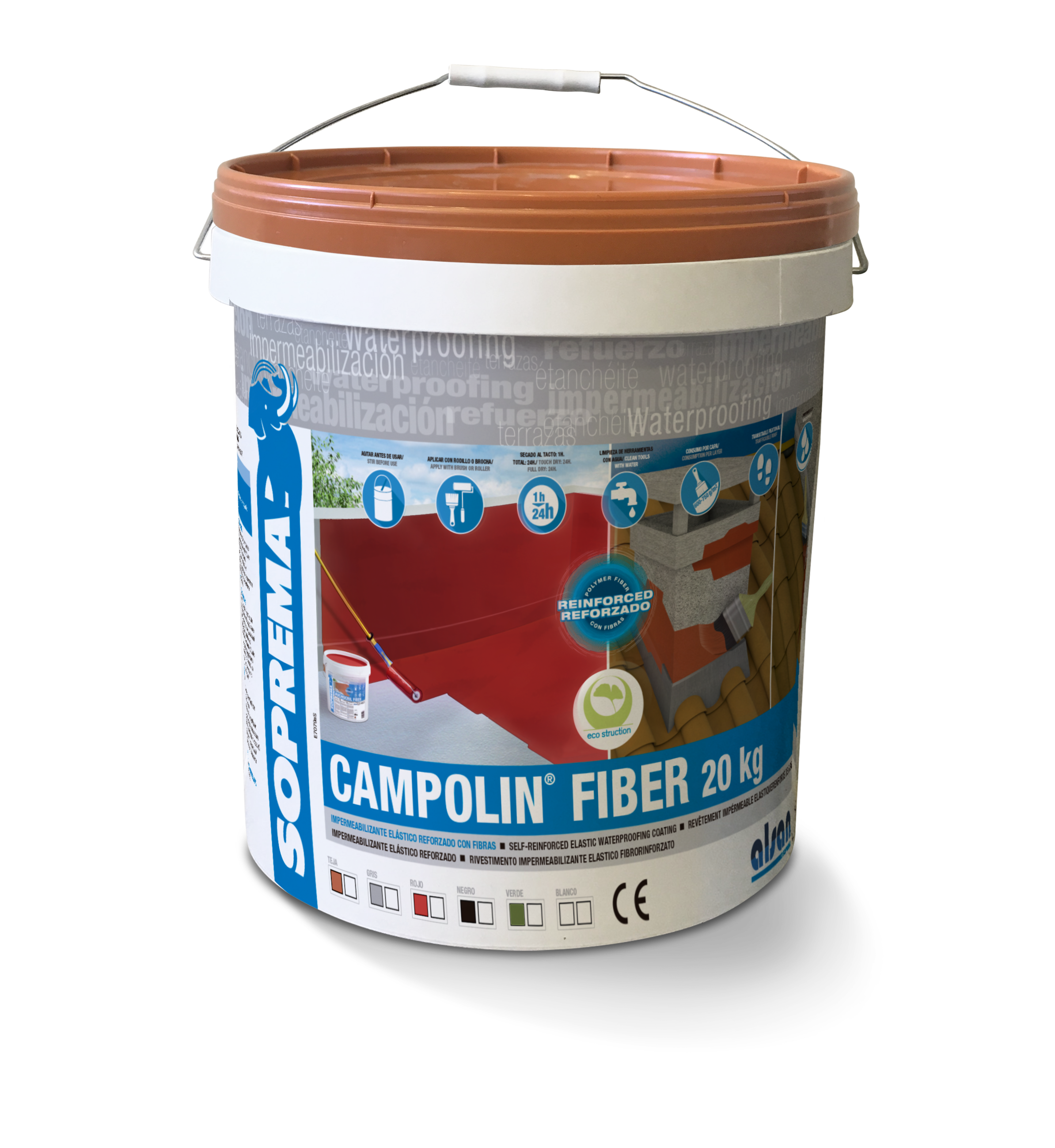 La resina acrílica de alta densidad Campolin Fiber forma una membrana elástica impermeable que gracias a sus fibras de refuerzo permite una aplicación sin tener que intercalar una armadura entre capas.