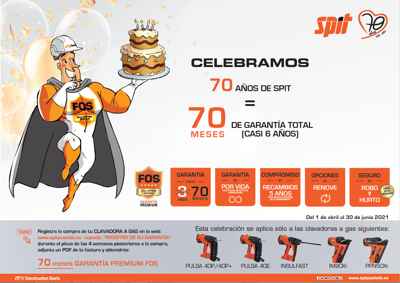 ¡¡70 AÑOS DE SPIT = 70 MESES DE GARANTÍA!!