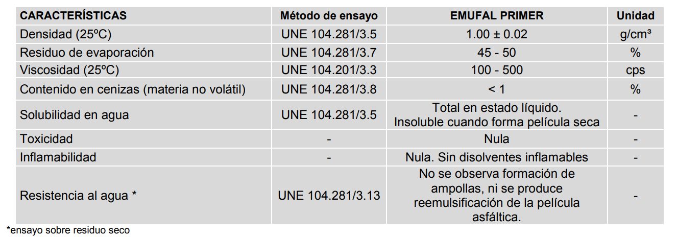 Emufal Primer es una emulsión asfáltica de carácter aniónico de base acuosa para imprimación y preparación de superficies.