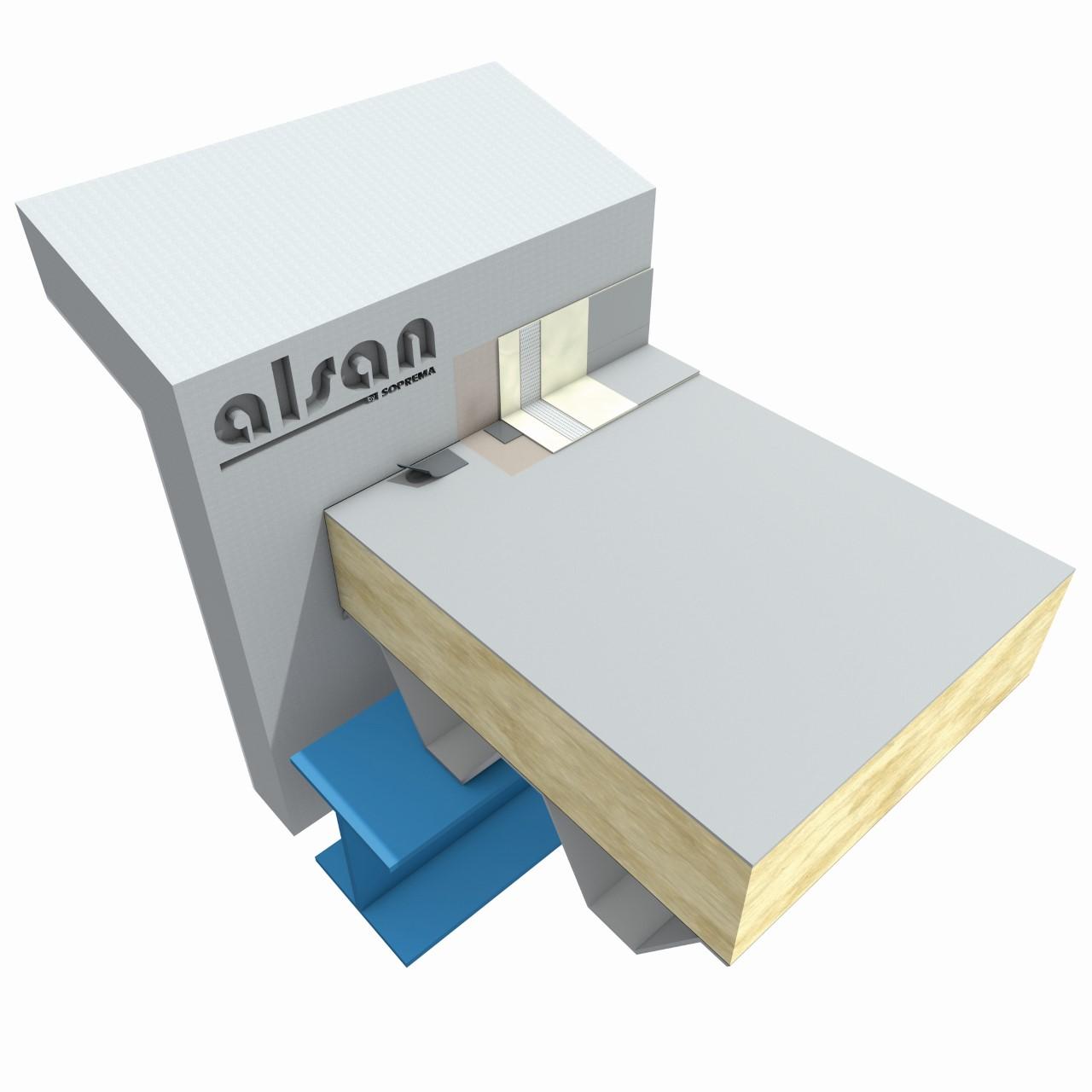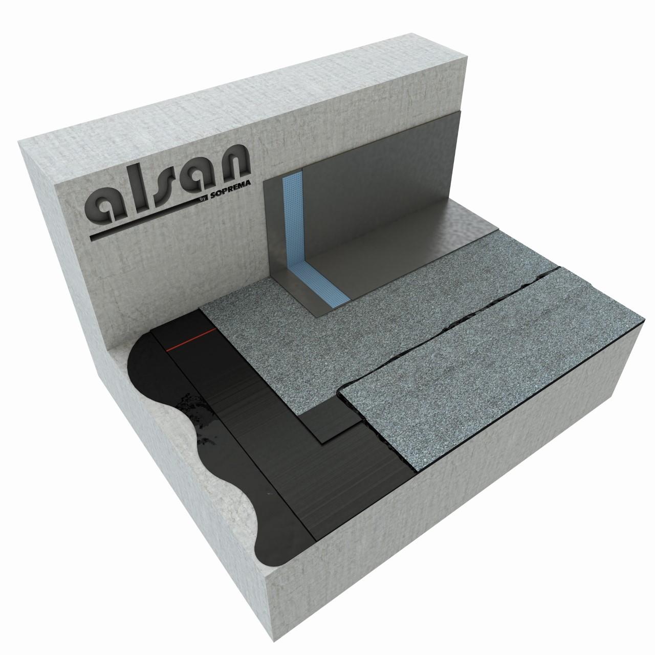 La misma solución con un producto de base poliuretano ALSAN FLAHING QUATRO permite el mismo uso con el color acabado listo para resolver cualquier detalle sobre sistemas de lámina asfáltica.