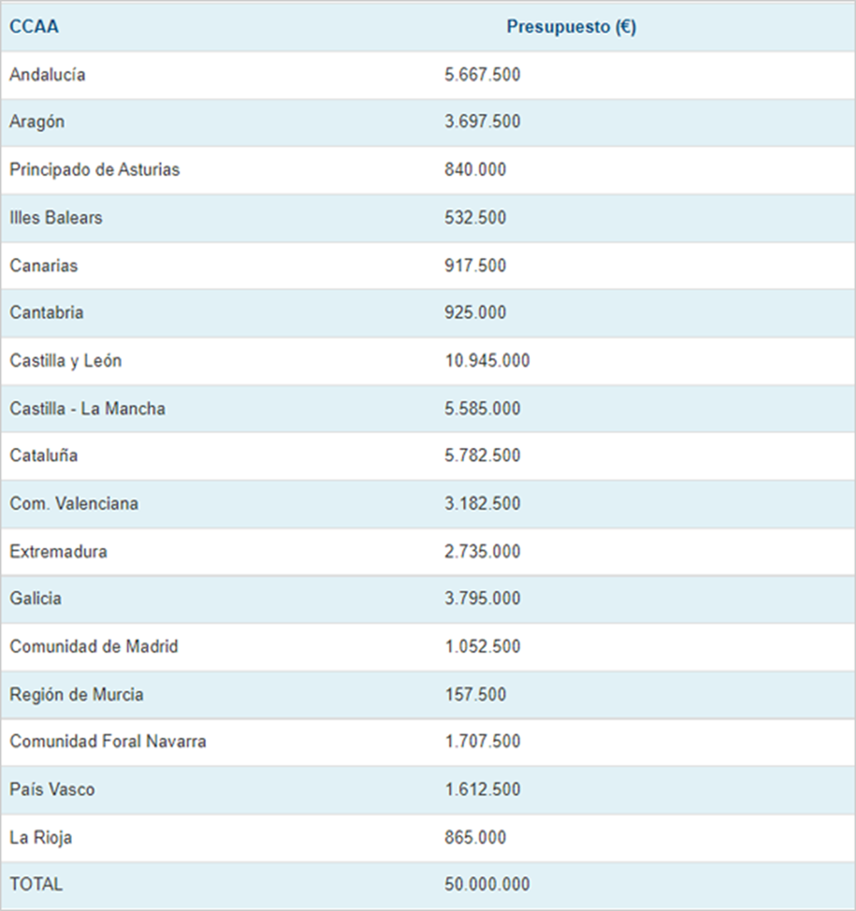 El plan fue aprobado el 3 de agosto y tiene vigencia hasta el 31 de diciembre de 2023. El presupuesto es de 50 millones de euros, si existe un presupuesto para el mismo fin y siempre que no hubiera expirado el plazo de vigencia. El Instituto para la Diversificación y el Ahorro de la Energía (IDAE) es el encargado de coordinar con las comunidades autónomas.