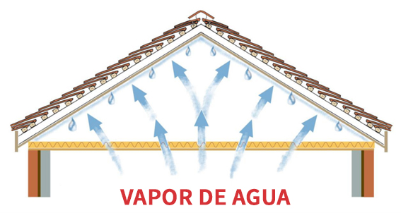 Formación de condensaciones en cubiertas y tejados: Vapor de agua