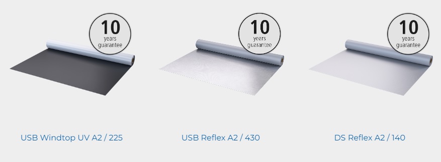 - USB Reflex A2/430, membrana transpirable para cubiertas que mejora el rendimiento térmico global gracias a su superficie reflectante;