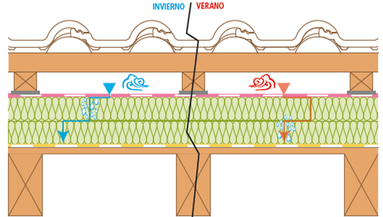 Este concepto no se debe confundir con la difusión del vapor, que es un fenómeno útil para secar la cubierta. El paso libre del aire implica graves problemas térmicos y de condensación