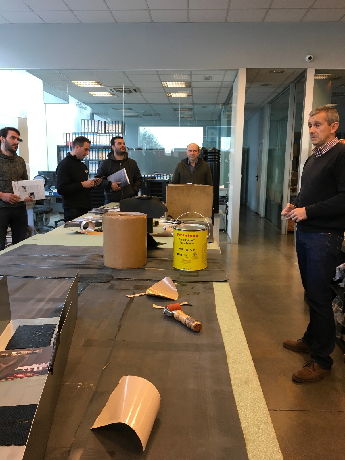 Como otro año mas hemos realizado el curso practico sobre sistemas de impermeabilización EPDM en nuestras instalaciones. A continuación detallamos parte de la formación. La impermeabilización mediante láminas de caucho EPDM parte de la fabricación de láminas compuestas por una estructura de polímero reticulado que proporciona resultados excelentes incluso en los entornos más exigentes a intemperie. Son láminas impermeables autoprotegidas. Se engloba entre las láminas sintéticas monocapa. Otra característica de las láminas EPDM es su durabilidad con expectativa de vida estimada en 50 años, de los cuales Firestone garantiza 20 años, incluso a intemperie. No solo es un buen material, Firestone también dispone de un sistema de instalación certificado por DIT (Documento de Idoneidad Técnica) expedido por el Instituto de Ciencias de la Construcción Eduardo Torroja, AVIS TECHNIQUE expedido por CSTB y otros certificados. El mejor de los materiales sin un sistema de instalación está llamado al fracaso durante su puesta en obra.