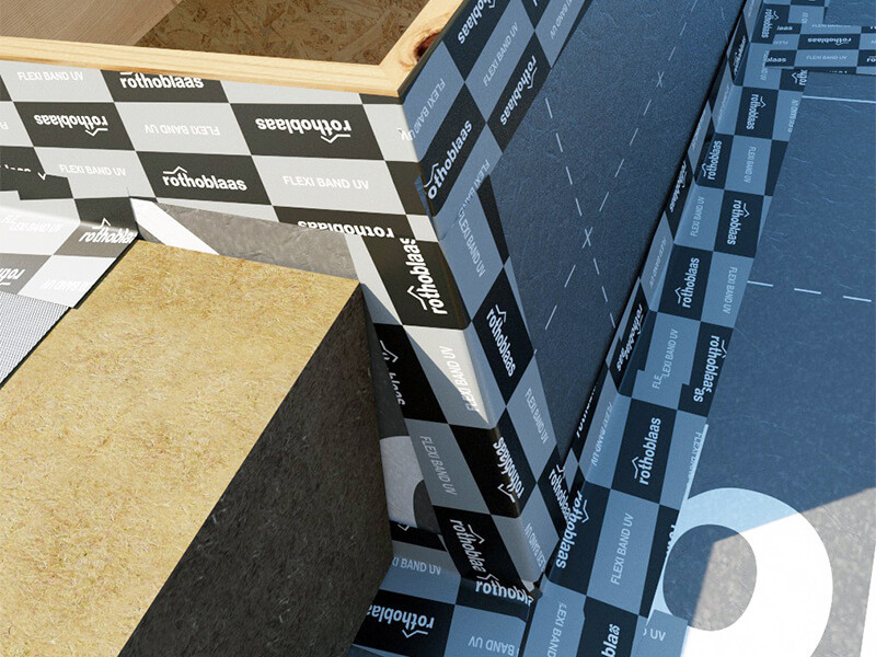 Datos técnicos: Conforme con la norma DIN 4108/7, disponibles con un ancho de 60 mm y de 100 mm en rollos de 25 m.