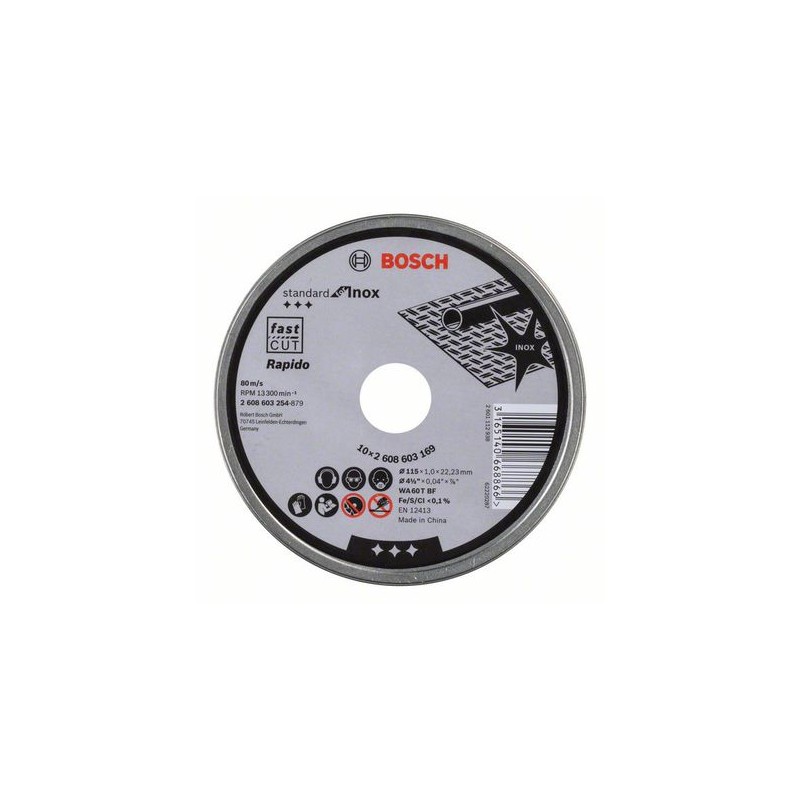 El disco de corte estándar para metal Bosch está hecho de óxido de aluminio diseñado para trabajar con metal.